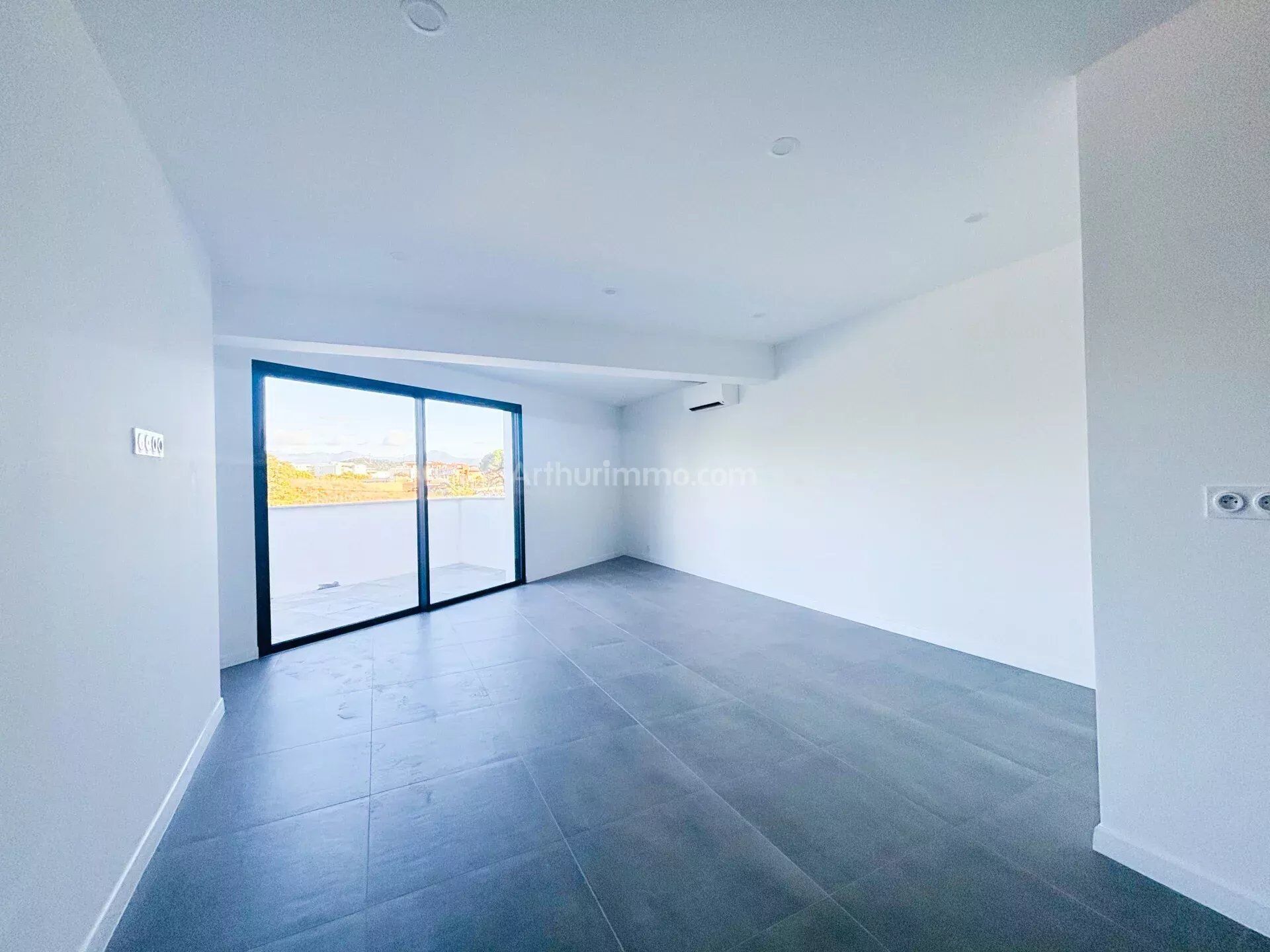 Prestations : carrelage, menuiserie aluminium, volets roulants électriques, climatisation, spots, porte blindée.