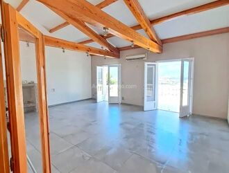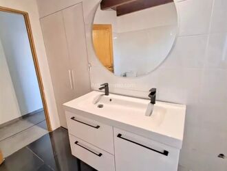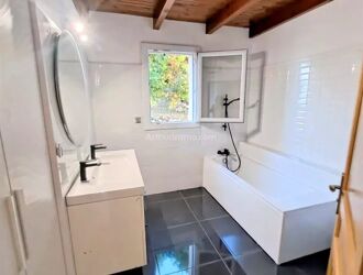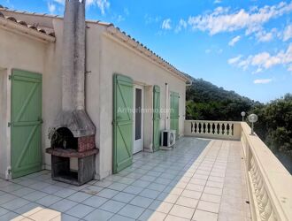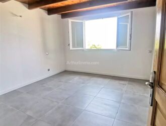 L'agence Seren'immo vous propose un haut de villa F5 à la location. Le logement est composé pour la partie jour : d'un double séjour avec cheminée et insert, d'une cuisine aménagée et semi-équipée, d'un WC. Terrasse (38,68 m²) avec vue dégagée. Pour la partie nuit : 3 chambres avec placard dont 2 avec accès mezzanine fermée (échelles escamotables), SDB avec WC.